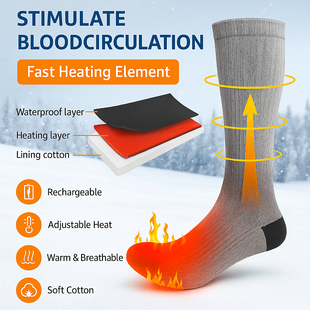 Keep your feet warm and healthy. Our heated socks help improve blood flow, reducing cold and fatigue for all-day comfort.